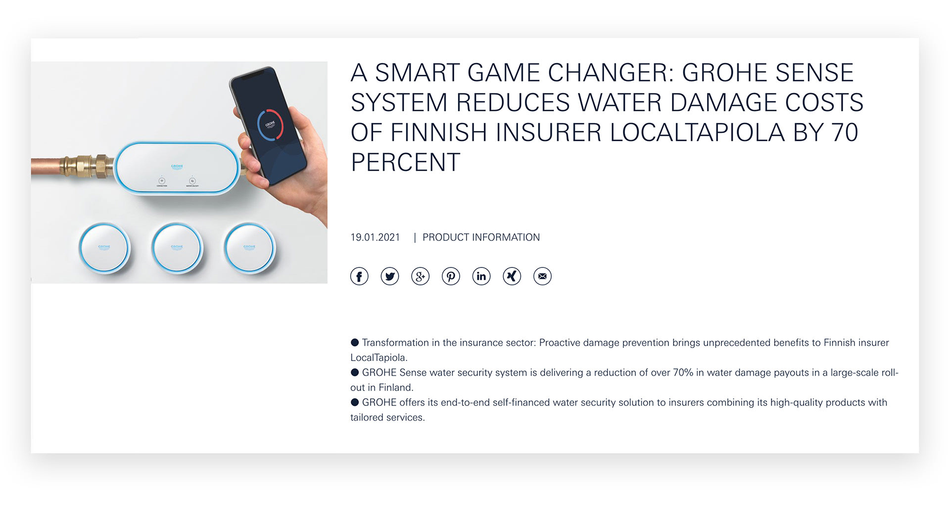 The GROHE Sense App successfully evolved from a low-engagement B2C product into a highly valuable B2B offering. Today, over 20 insurance companies, including major players like Zurich, Localtapiola and Tryg, have partnered with GROHE, actively using the app and sensor system to monitor and prevent water damage.